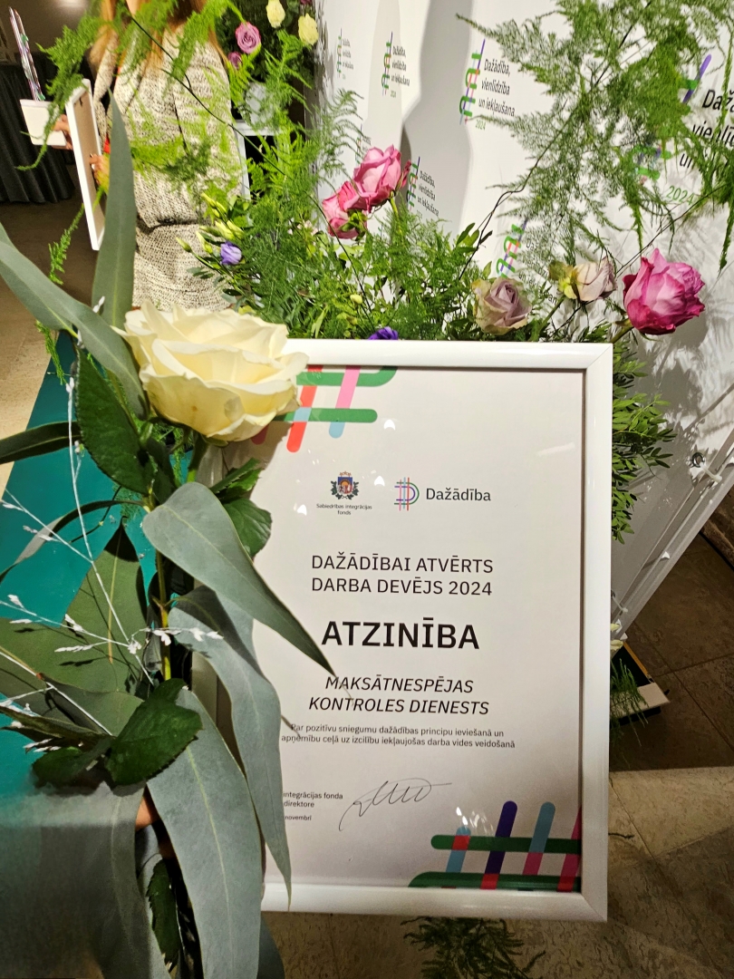 Šogad Maksātnespējas kontroles dienests piedalījās Sabiedrības integrācijas fonda (SIF) rīkotā darba devēju kustības “Dažādībā ir spēks!” novērtējumā un ieguva atzinību.