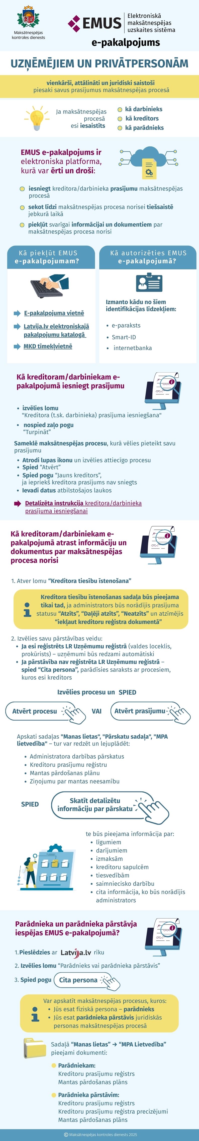 EMUS e-pakalpojums nodrošina iespēju kreditoriem un darbiniekiem vienkārši, attālināti un juridiski saistoši pieteikt savus prasījumus maksātnespējas procesā.